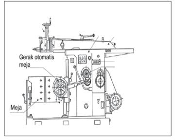 eretan lintang meja mesin atau dengan menggunakan tuas otomatis gerak